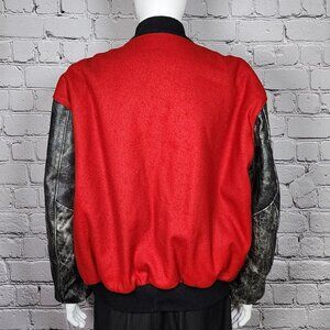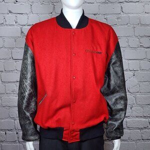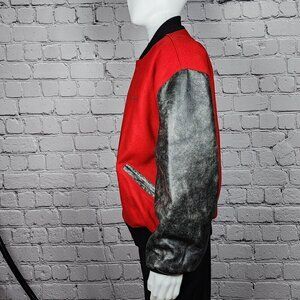 • Unique and vintage varsity jacket, Cellular One on right front, Vibrant red and black, Made in USA, Measurements in images