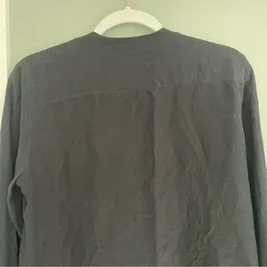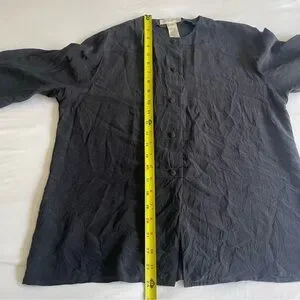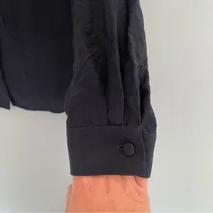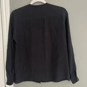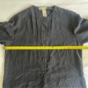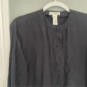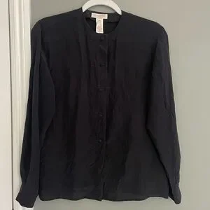 Vintage Jones New York 100% Silk Black Collarless Button Up Shirt Blouse