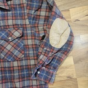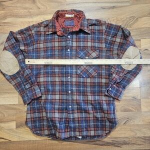 Vintage Pendleton LOBO 100% Wool Plaid Flannel Shirt Blue Brown Padded Elbows L