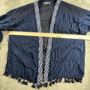 Miss Me Cardigan Women Small Blue White Embroidered Desert Dreamer Tassel Kimono