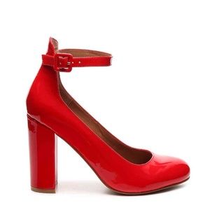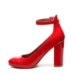 New, never worn. Steve Madden continually impresses the true fashionista with new and fun silhouettes that work for years to come. The Vivii is a block heel pump you are sure to rock! The red heels are used for reference, it's the exact same style. Has an ankle strap.