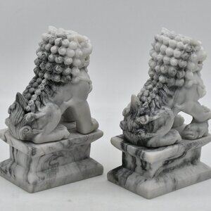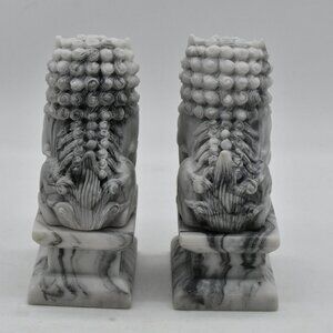 Carved marble foo dogs (Chinese guardian lions) in excellent condition. They weigh a little over 1 pound 7 ounces together and are approximately 4 1/2" tall. Please refer to pictures for additional condition details. Let me know if you have any questions.
