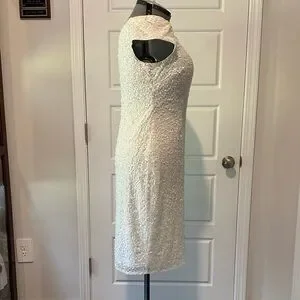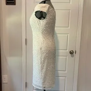 Dazzle in this Adrianna Papell mini dress. Covered in shimmering sequins. Perfect for special occasions. This is a beautiful cream color/off-white cocktail dress. From smoke free home.