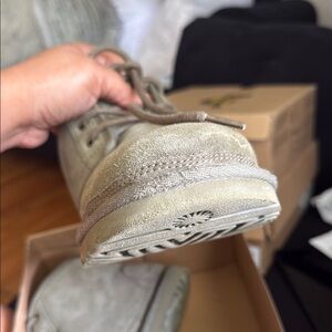 Stylish UGG chukka boots in olive suede. Comfortable and durable for everyday wear.