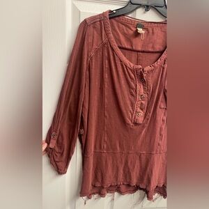 Free People “We The Free” Distressed Oversized Stargazer Henley Top Size Small