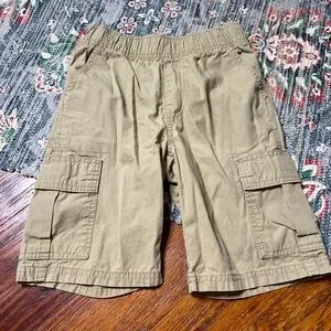 Versatile khaki cargo shorts. Equipped with spacious pockets. Ideal for casual wear.