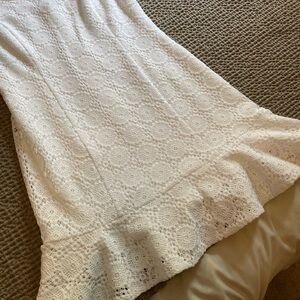 Chic white lace mini dress by Lilly Pulitzer. Features a flared hem and sleeveless design. Perfect for summer outings. Never worn