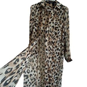 🐆 Make a bold yet elegant statement with this sheer leopard-print lace cover-up.