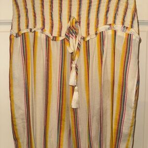 Chic and comfortable striped jumpsuit featuring a blend of yellow and white. Perfect for casual outings or a day at the beach.