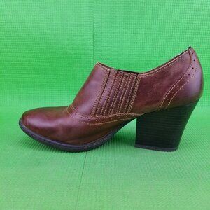 ✅BOC Brown Leather Ankle Booties Block Heels Womens 9.5 INSOLES LIFTING + DAMAGE