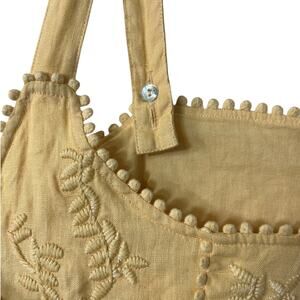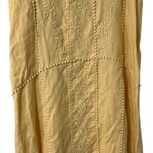 Magaschoni Linen Sundress Yellow Boho Embroidered Spaghetti Strap Cottagecore