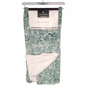 NWT Seasons Collection Faux Fur Green White Plush Throw Blanket 50" X 60" Cozy
