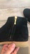 Elegant black suede boots with a stylish gold zipper. Ideal for chic outings. Excellent used condition hardly worn! Features black tassel on the outer shoe suede and a gold zipper for easy slip on and style.