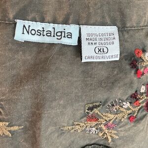 Nostalgia Green Button Down Shirt with Floral Embroidery