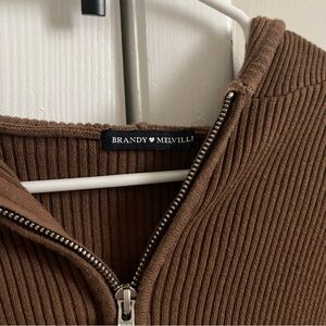 Brandy Melville Brown Ribbed Zip-Up Hoodie