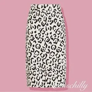 - NWT Ann Taylor White Black Animal Leopard Print Spots Midi Pencil Skirt Sz 8