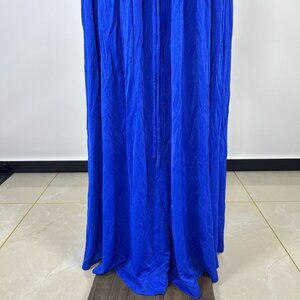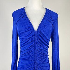 NWOT Farm Rio V Neckline Ruched Blue Maxi Dress Long Sleeves Size M