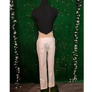 Celebrate your pregnancy in comfort with these white skinny jeans from Isabel Maternity by Ingrid & Isabel! These feature a full panel to support your growing belly that is lower in the back with a cute cross over design. There are some markings near the top of the panel, as shown in the photos above. I am unsure if this will wash out or not so I wanted to be sure to mention it. Otherwise, there are no other stains, holes or signs of wear! Matching your outfit to these jeans is a breeze, and they have no button, zipper, or front pockets to get in the way of your growing belly! These are definitely a must have for any pregnant women in your life! Get them as a gift for yourself or someone you love today!