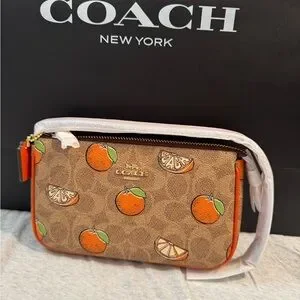 Chic Coach Nolita with playful citrus design. Features vibrant orange accents. Ideal for a fresh style statement. New still in plastic shopping bag not included.