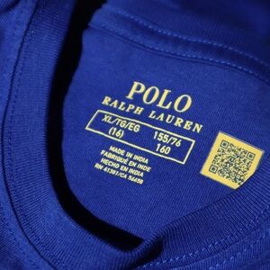Vibrant royal blue tee. Iconic Polo branding in yellow.