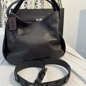 Coach Elegant black and floral leather 2 in 1 hobo coach purse! It transforms into 2 separate purses or can be used together! Gently used very little sign of ware. Will come with coach dust bag. I loved her but got too large for me. Offers welcome shopping bag is not included on sale.