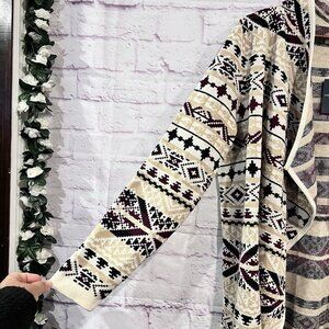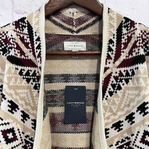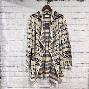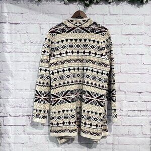 Lucky Brand Aztec Jacquard Open Front Long Sleeve Knit Cardigan Size XL Boho