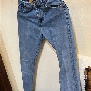 Levi's 517 bootcut jeans in classic blue. Well loved as indicated by some wear! Timeless design with signature stitching. Perfect for everyday wear.