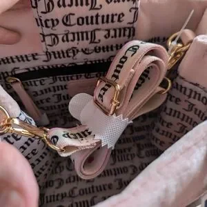 The Juicy Couture Extra Spender Mini Tote in Fondant Pink is a stylish and chic handbag with a solid pattern and rectangular shape. Made from velvet with rhinestone accents, this tote features a magnetic closure and a pink strap handle. It includes inner pockets, an adjustable crossbody strap, and accessory pockets for added functionality. Perfect for women looking for a mini tote with a touch of luxury and fashion from the renowned Juicy Couture brand.