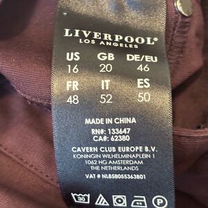 Liverpool Los Angeles Burgundy Slim Pants Size 16/33