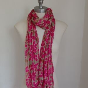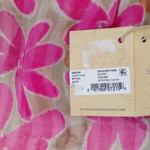 NWT Patricia Nash Womens Long Fringed Hot Pink/Tan Floral Daisy Scarf 27" x 79"