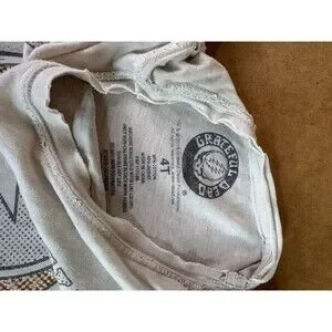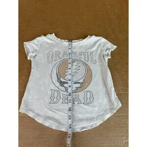 The Grateful Dead Graphic T-Shirt in size 4T features a solid white color with a grey skull design, perfect for young rock enthusiasts. Made from a comfortable cotton blend material, this short sleeve shirt has a crew neck and is suitable for all seasons. The tagless design ensures added comfort during everyday activities like walking. Representing the iconic Grateful Dead brand, this basic T-shirt is a stylish and versatile addition to any youth wardrobe.