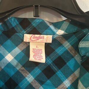Candies size large blue and black plaid button up