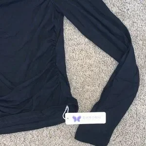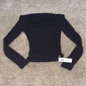 NWT Women's Black Off The Shoulder Long Sleeve Form Fitting Ruched Top XS