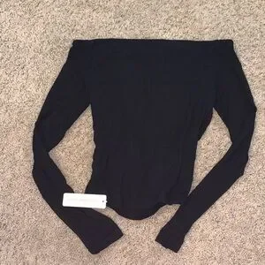 Women's Black Off The Shoulder Long Sleeve Form Fitting Top