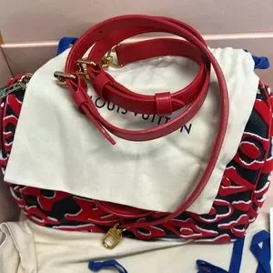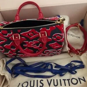๐ SPEEDY ๐ BRAND NEW Louis Vuitton Red and Black Satchel BANDOULIERE