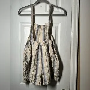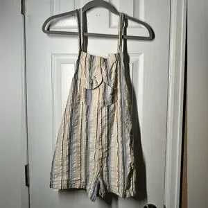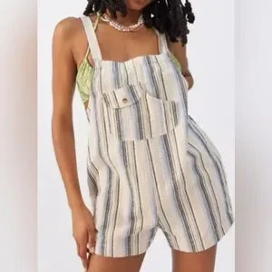 Urban Outtfitters Women's Chelsea Linen Blend Shortall Overalls Stripes Beige