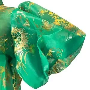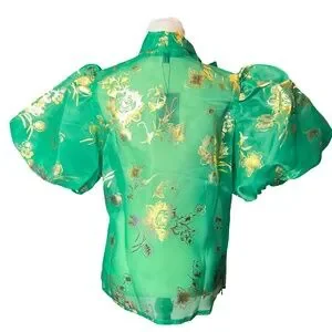 #A117 Nancy Sheer Luxe Green & Gold Organza Puff Sleeve Top NWT L