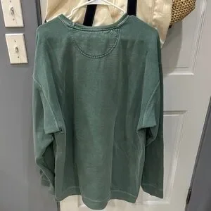 Green sweatshirt with angel graphic. Boys Lie logo on front. Comfortable and stylish.