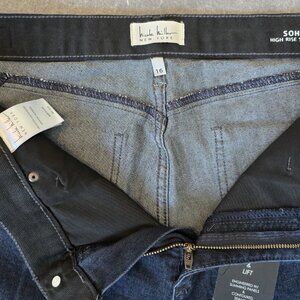 Nicole Miller SOHO High Rise Skinny jeans in a nice dark denim color. The jeans feature "Sculpt Lift & Shape" slimming panels and contoured panels. The jeans have a nice stretch.