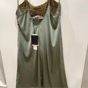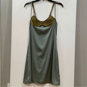 Zara, Green Satiny Lingerie Slip Dress, Size S