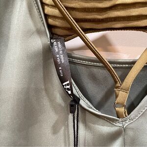 Indulge in the luxurious feel of this Zara green satiny lingerie, with spaghetti straps and a classic scoop neckline. This piece offers both comfort and style. Ideal for a restful night's sleep or lounging in elegance.