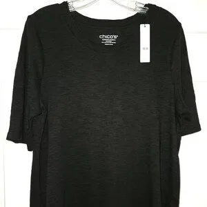 Chicos Slub Elbow-Sleeve Tee Black New With Tags Size Large