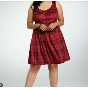 Torrid Red Faux Suede Brushed Plaid Skater Fit & Flare Dress Plus Size 24