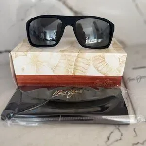 Maui Jim BYRON BAY Polarized Sunglasses 746-02MR Matte Black Rubber Neutral Grey