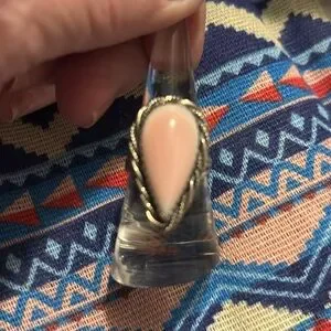 Pink conch teardrop sterling silver ring. Size 7 3/4. Solid sterling silver. Gorgeous pink conch shell ring surrounded by beautiful rope border design in sterling. Solid back weight of piece is 9.3 grams. Nice large presence on finger. New without tags. 2JB6