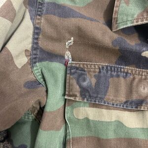 Authentic U.S. Army vintage utility jacket/heavy button down shirt. Features classic camouflage pattern and patches. Durable and stylish for everyday wear. Does have some wear but in overall great condition.