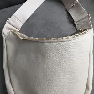 Elevate your style with this chic cream canvas crossbody bag. Its versatile design is perfect for any outfit.