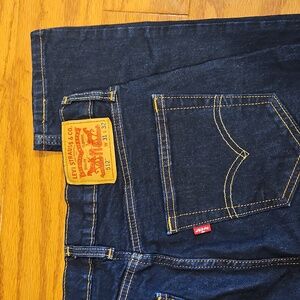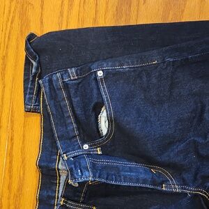 Sleek and modern Levi's skinny jeans. Deep blue color. Perfect for a stylish look.
