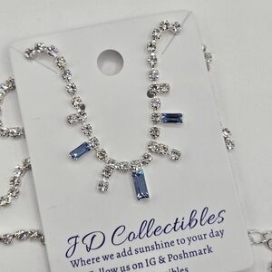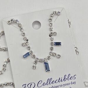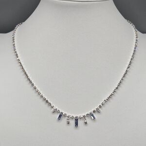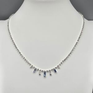 Tennis Necklace Made with Swarovski Crystals Silver Lt Blue & Clear Crystals