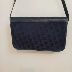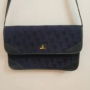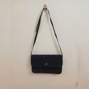 Lanvin Vintage Canvas and Leather Blue Flap Shoulder Bag.